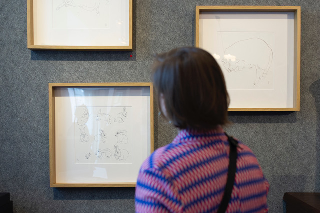 Rysunki Katarzyny Haber są niby kadry autobiograficznego filmu. Wprowadzają do pokoju, w którym otulona puszystym swetrem zerka na ukochane przedmioty lub na łąkę, pełną świetlnych refleksów. Przepływające powoli kolejne odsłony, pozwalają podejrzeć odpoczywającego kota, odnaleźć zarys twarzy, ukryty w trawach kogoś z rodziny autorki, podpatrzeć brudne stopy po podróży.