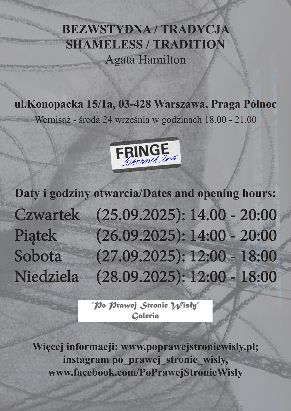 Chciałam serdecznie podziękować państwu za tak liczne przybycie na wernisaż dzisiejszej wystawy, a tym samym na festiwal Fringe Warszawa, którego jesteśmy częścią̨.